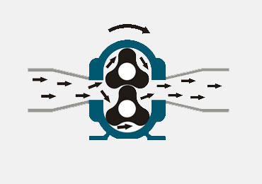 凸輪轉子泵屬于容積泵,有兩個相向旋轉的轉子安裝于平行的同步齒輪軸上,轉子與泵殼之間不斷形成小的腔體,填充在腔體內的介質不斷被旋轉的轉子由進口端推到出口端。